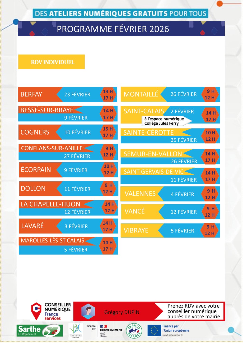 DATES DE PERMANENCE DU CONSEILLER NUMÉRIQUE FÉVRIER 2026