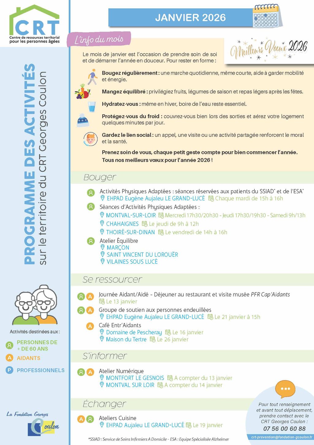 Découvrez le programme du Centre de Ressources Territorial pour les personnes âgées pour le mois de janvier