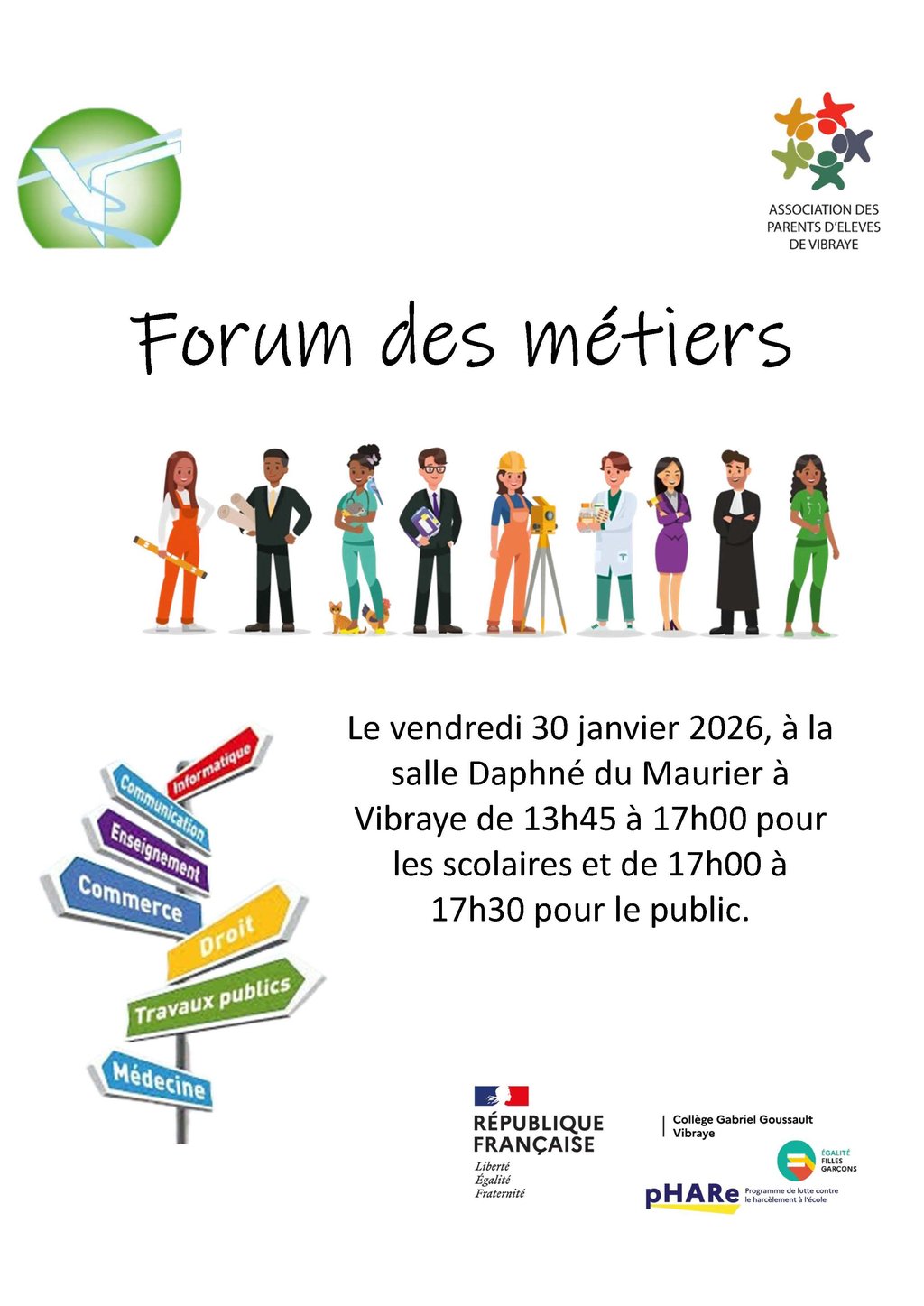 L'association des parents d'élèves de vibraye en partenariat avec le Collège Gabriel Goussault et la commune de Vibraye, organise un forum des métiers.